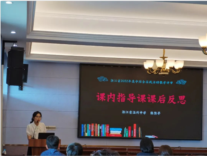 浙江省教育厅教研室举办的2022年高中综合实践活动教学评审在宁波市奉化区教师进修学校顺利举行,代表温州地区参赛的温州中学张依亭老师荣获一等奖。