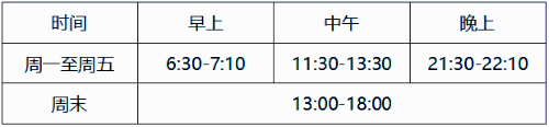 在接送时间允许车辆根据引导牌指示,单排靠边临时有序停放,即停即走,其他时间均不允许车辆停放。建议家长接送时间详见下表: